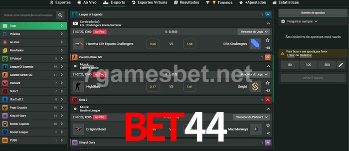 O Bet44 oferece uma grande seleção de opções de apostas em e-sports com probabilidades competitivas